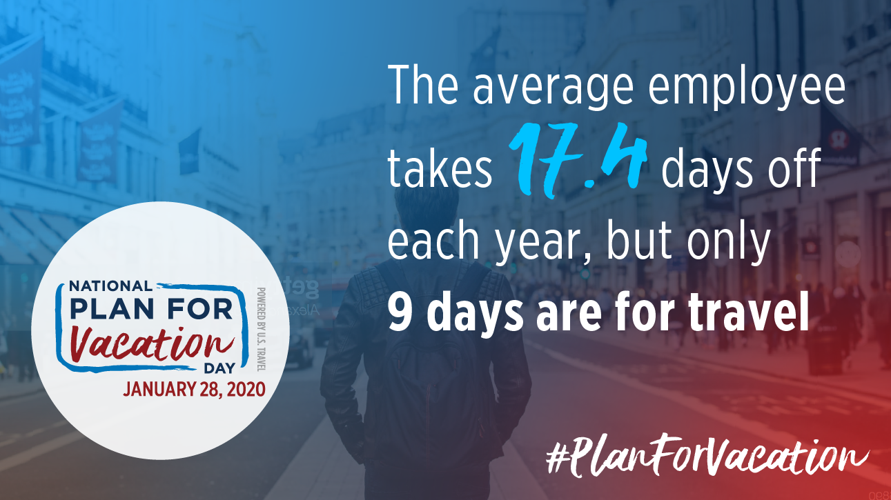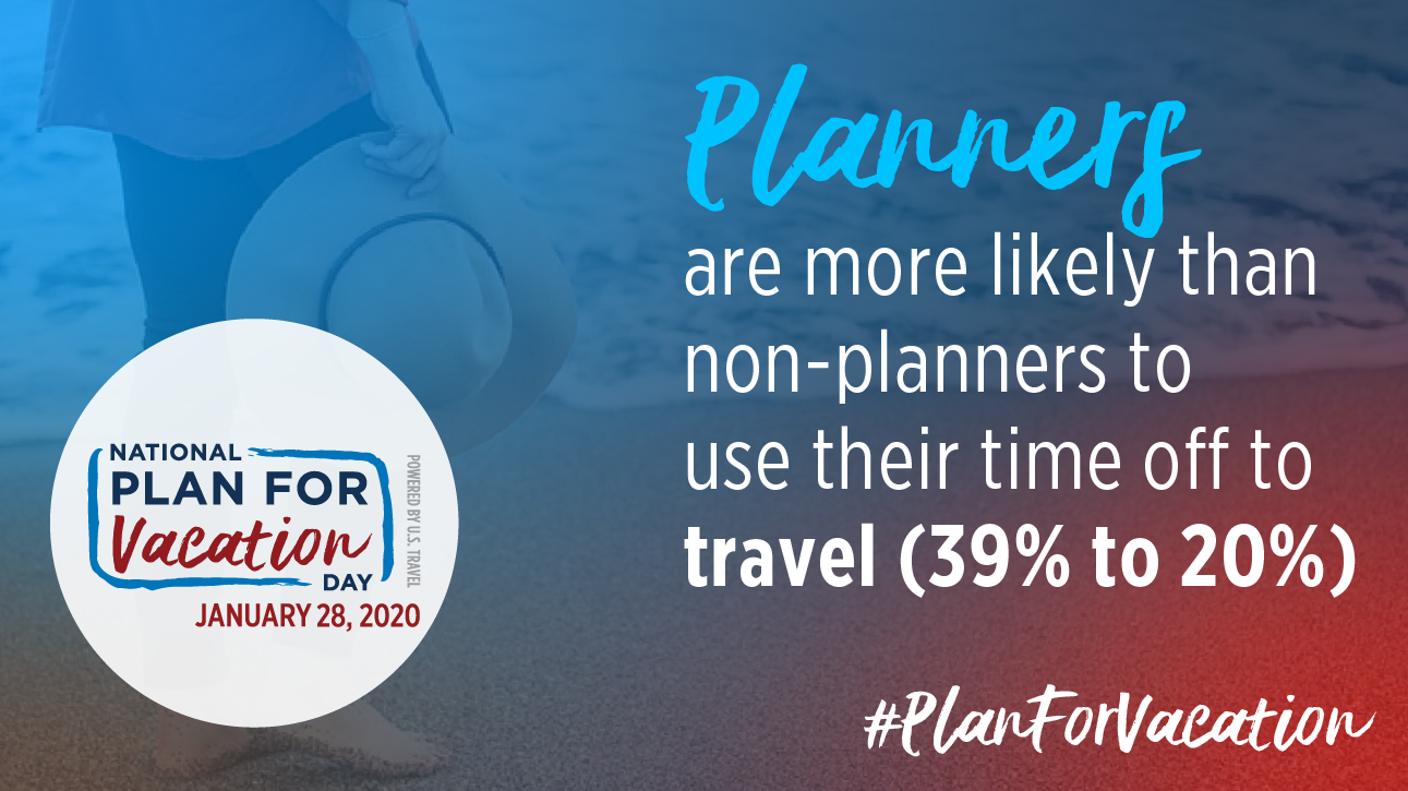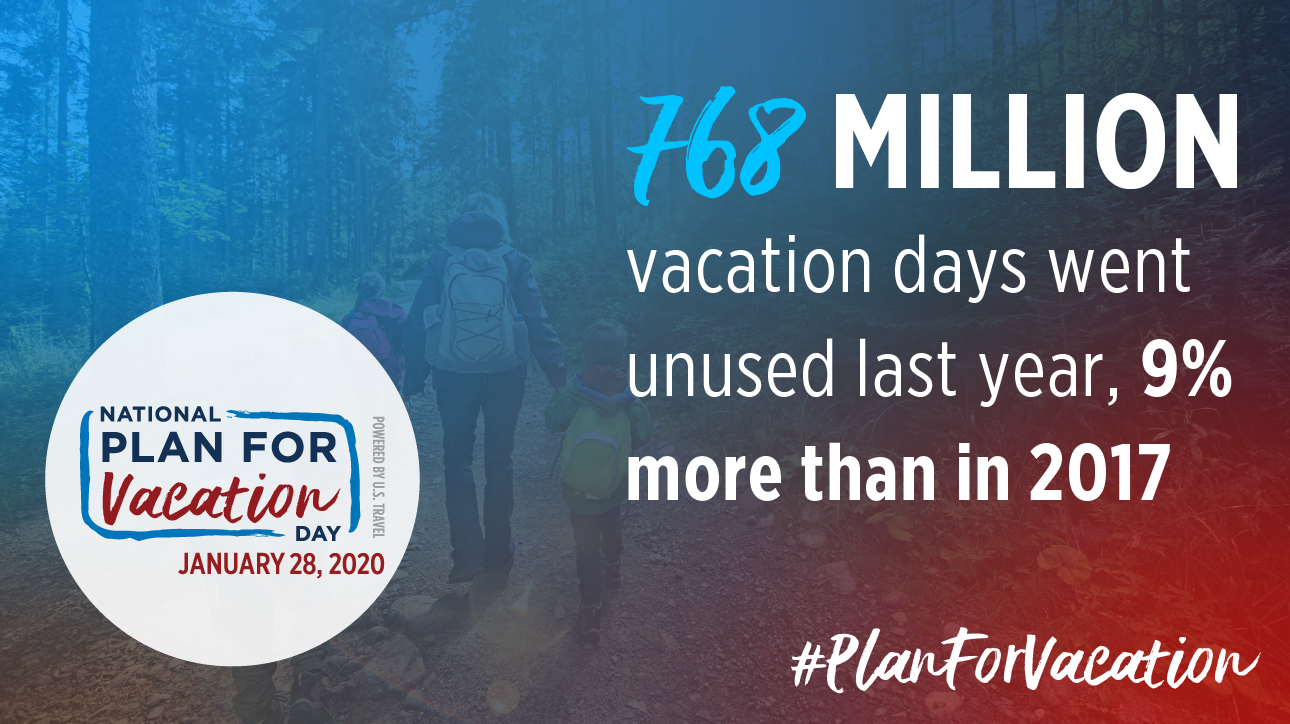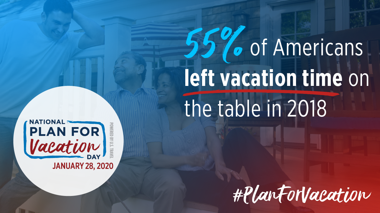Make sure to save the date for National #PlanForVacation Day January 28, 2020, now in its fifth year. Hundreds of organizations and travel influencers will join together for this annual event to encourage Americans to take their time off—and use those days to travel.